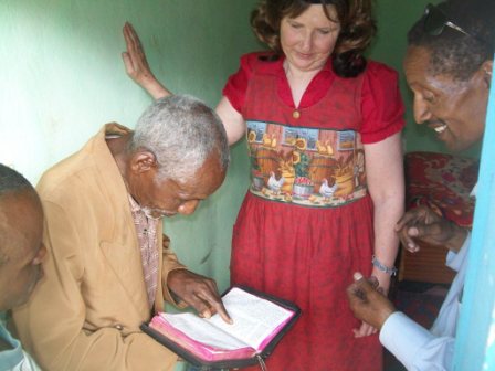 "Do you know what her name is?" he asked Oshe, referring to me. "Yes, I know. " Oshe replied, wondering if Olka was getting forgetful. "Her name is Deborah," Olka announced. At first I thought in English about the similarity between "Becky" and "Debbie," and I thought he was confused. Oshe started to correct him, but Olka interrupted. Sitting on the only chair in my room, he had his Bible open to the book of Judges, chapters 4-5. "You are the Deborah of Burji," he announced authoritatively. I was amazed at his words. I did not feel that I was a Deborah. I was a woman who was dealing with cancer surgery, radiation and chemo therapy....and in the midst of all of this was continuing, by the grace of God, to do His eternal work. But somehow God had used me to be an encouragement to this old warrior of the Faith. And because of my presence in Burji, his heart had been restored for the Work. How I praise God for that little role in the life of Olka.