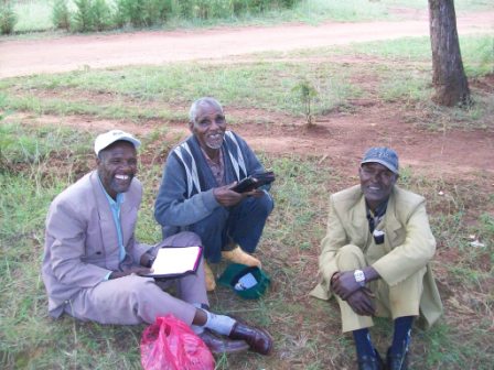 On March 24, 2012, a man named Olka Ogiyad passed from Burji into Heaven. I'm guessing he was in his mid-late 80s. Jesus called him to Heaven as he was reading his Bible. He had just returned from trekking in Guji-Land, telling the Gospel everywhere he went. Just a couple weeks before, God had given him a vision. "400 Gujis will come to Christ this year," he told Oshe Burje, a church leader in Burji. The story of Olka is the story of God's redemptive power and the response to that redemption of faithful service. In about 1955, as a young man, Olka was sitting at the door of his hut when approached with the Gospel. His life was full of mischief. He was known throughout the area as a wild man, full of fighting, thievery, etc. He told me himself that he was full of sin. He said, "I used to catch rats, and tie a handful of straw to their tails. I would light the straw with fire, and set the rats loose on my neighbor's homes. The rats would go up to the thatch roofs, and the homes would burn down. But when God came to me, I suddenly changed all my behavior." As he sat in that doorway, two strangers walked down the road towards him. One was a white man, Alex Fellows of the Sudan Interior Mission. (Alex passed into Heaven just one week before Olka.) The other was an Ethiopian from another district, sent by the Woyletta church as an evangelist. These two men approached Olka and told him the Gospel. Immediately the heart of Olka knew and accepted the Truth spoken to him. He embraced Jesus Christ as his Savior, and his life was never the same.