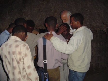 And Tesfaye continued faithful in his village. "They (the Muslims) tell us that we must leave the village," Tesfaye told Dave. "They do not want Christians in the town. But this is our home. We will not leave." A handful of Christians in the town were meeting in Tesfaye's home for fellowship, prayer and teaching. He was on the very edge of the front line, standing alone for the Gospel. We asked him once, "What is your strategy for winning the Muslims to Christ?" You might be surprised at his answer. "We do 3 things: We live pure lives. We love them. And then we stand ready to answer their questions about the power in our lives." So simple. So biblical. Just humble believers living out the Gospel, shining as lights upon a hill, for the salvation of many. As time went on, however, the persecution continued, taking many forms. Once all believers in the village were physically expelled. They were placed on the road far from the village and told they could not come back to their homes. Government authorities intervened and forced the villagers to allow the Christians to return to their homes. Sometimes the homes and shops of the Christians were burned or looted. Always, the Christian wives and children were taunted at school or the water pump. The marketplace was a place of persecution as prices were raised or commerce was refused to Christians.