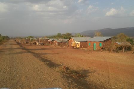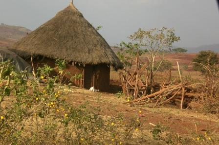 Burji has one main town, Soyama. This is the location of government offices, the only high school, and the government clinic. It also is the only place where electricity, phone, and email service is available, thanks to the Chinese who brought it about 2 years ago. There are no paved roads in the Burji District. It is dotted with small towns of about 30-50 homes; most people live out in the country in simple round mud huts with thatched roofs. In the highlands the people get their water from springs; in the valleys they go to rivers; very few wells exist. Walking across the Soyama market area.