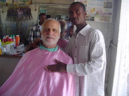 But the story doesn’t stop with Mohammed and Kedir. There are the guards. On our first visit, we were searched with suspicion; they definitely did not want us visiting. But by the second and third visits these guards were not only freely allowing us entrance, they were asking Dave to sketch their portraits, inviting us to coffee with them, letting Mohammed and Kedir outside the prison to visit with us and the guards. And when we saw these guards in town, they greeted us like long-lost family members! We don’t know where these guards are spiritually yet. All we know at this point is that God has opened wide the door of the prison. Wouldn’t it be wonderful if the Spirit of God swept through that prison, using Kedir and Mohammed? Jesus has turned these former enemies into brothers; He has replaced anger and aggression with His love and gentleness. In the confines of the prison, the others are watching. Changed lives are a testimony to power. In my interviews, I cannot tell you how many people said they came to Christ because they could not resist the testimony of changed lives. The church leaders are following up with discipleship training. And we plan to keep in regular contact, sending care packages, letters, etc., to both prisoners and guards. Please pray for this little plot of land where the air is so thick with heartache. Pray that the Lord will sweep the area with His love, so that many, many more will come to Him as Saviour and Lord. Haile the barber… Like Paul in the book of Acts, we’ve met people in the normal course of life who seem to be divinely appointed. One such person is Haile the barber. Haile is regularly visited by our son David and many other believers. They have been reaching out to him, touching him with the Saviour. Last year Dave visited Haile’s shop on several occasions…not so much for the hair cut as for the relationship. Amazingly, just before our departure here we received an email from Haile. He was eagerly awaiting our arrival. On our first day in Alaba we visited his shop but he