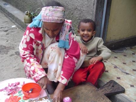 I met Melese’s wife when she came to me with a swollen knee. It had been swollen for about 6 months, and she could barely walk. With God’s help, over the course of 2 weeks, she was much improved through medication I had with me. We got her a toilet seat (so that she doesn’t have to squat) and I gave her strict instructions about using her knee. Unfortunately, life for an Ethiopian woman is very hard on the body (see photos below) and, being the wife of an evangelist, there isn’t money for nice things like work tables. Ethiopian women do their cooking at ground level. Please pray for Tigist, that she will learn to live with the arthritis God has chosen to give her.