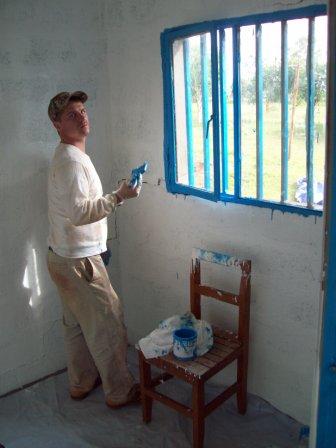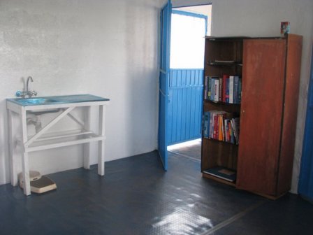 When all was completed, this is what remained of our supplies: 1 screw and 3 small strips of connecting tape. Amazing! Only the Lord of Heaven could have arranged things with such precision. Jason taught a laymen’s Bible Conference on the book of 1Timothy for 3 days, and then he painted the interior of the clinic. He made history in Burji when he used the paint straight from the can, undiluted! Now the clinic has a nice thick coat of white enamel on the walls, with a lively blue trim on the doors and windows.