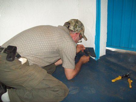Team Work at the Burji Clinic, Ethiopia, May/June, 2009 From May 25 to June 5, four people from North Carolina joined BeckyLynn in ministry to the Burji people in southern Ethiopia. Ed Johnson, Danny Chambers, and Jason Evans came from Bethel Hill Baptist Church in Roxboro, NC (bethelhillbaptistchurch.org/), and Amber Nichols came from Mt. Pleasant Baptist Church in Wilkesboro, NC (mpbc.ws). We arrived late Sunday night in Addis Ababa and spent all day Monday getting supplies in the little shops of Addis. Ed and Danny had to learn a new way of plumbing. Bargaining for flooring in the Mercado (“market place”) was something else! But God blessed us with helpers, and after a long, full day the bus was loaded with all our supplies, as well as bottled water. We left Addis at 3:30am the next morning, bound for Burji, and God allowed us to arrive safely at about 8pm. In the following 8 days Ed and Danny worked tirelessly in the construction projects of plumbing and flooring for the clinic and electrical wiring for the Bible School. They placed 3 sinks and French drains in the clinic, as well as wall-to-wall rubberized flooring. The electrical wiring included lights and outlets for 2 dorm rooms, a library, and several smaller “evangelist rooms.”